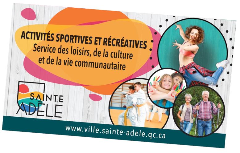 Vous trouverez également la programmation des activités sportives et récréatives et l'entente intermunicipale dans la dernière édition de l'Actualité adéloise, distribuée par la poste et disponible en ligne.